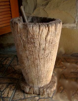 É normalmente feito de um tronco escavado, com fogo, depois é aparelhado com formão. No pilão coloca-se café, milho, amendoim, arroz para socar. Pode se socar com uma mão ou duas mãos de pilão onde os movimentos são precisos compassados e rápidos.